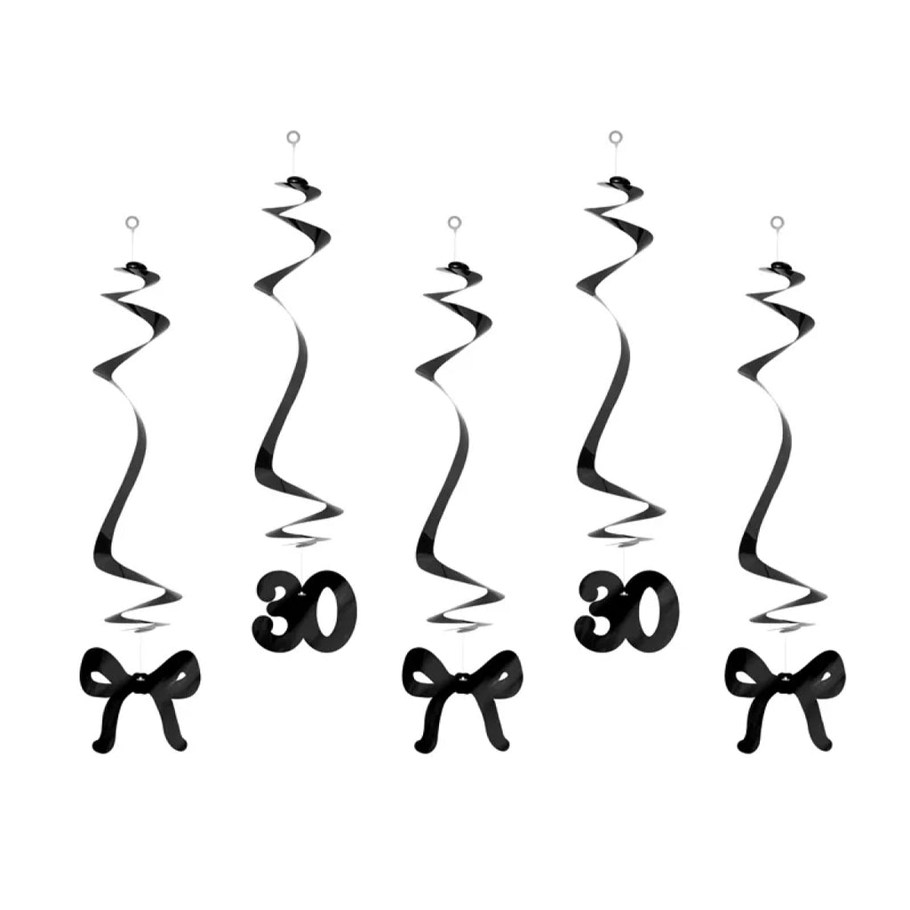 Fødselsdagsspiraler – Sort – 30-års fødselsdag – 50 cm – 5 stk.