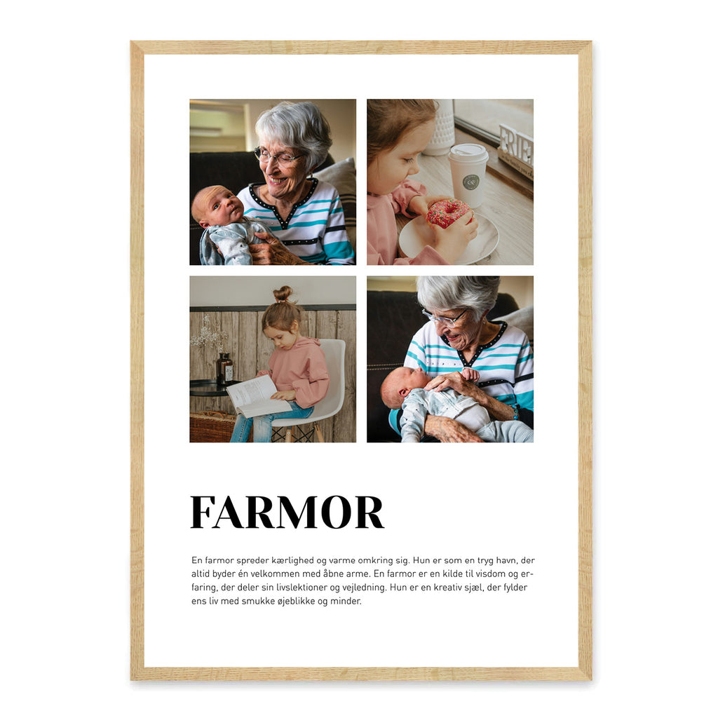 Fejr kærligheden og det særlige bånd til din farmor med denne smukke plakat. Gør den personlig med egne billeder og tekst, så den afspejler minder, nærvær og de gode stunder, I deler sammen.