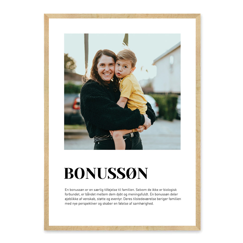 En Bonussøn-plakat er en smuk måde at hylde den dreng, der har fundet sin helt egen plads i hjertet og i familien. Den fortæller historien om et bånd, der vokser gennem fælles oplevelser, tillid og små øjeblikke, hvor man mærker, at man hører sammen – uanset hvordan familien er blevet skabt. En bonussøn bringer energi, glæde og nye perspektiver ind i hverdagen, og plakaten indfanger netop den varme og betydning, han har i jeres liv.