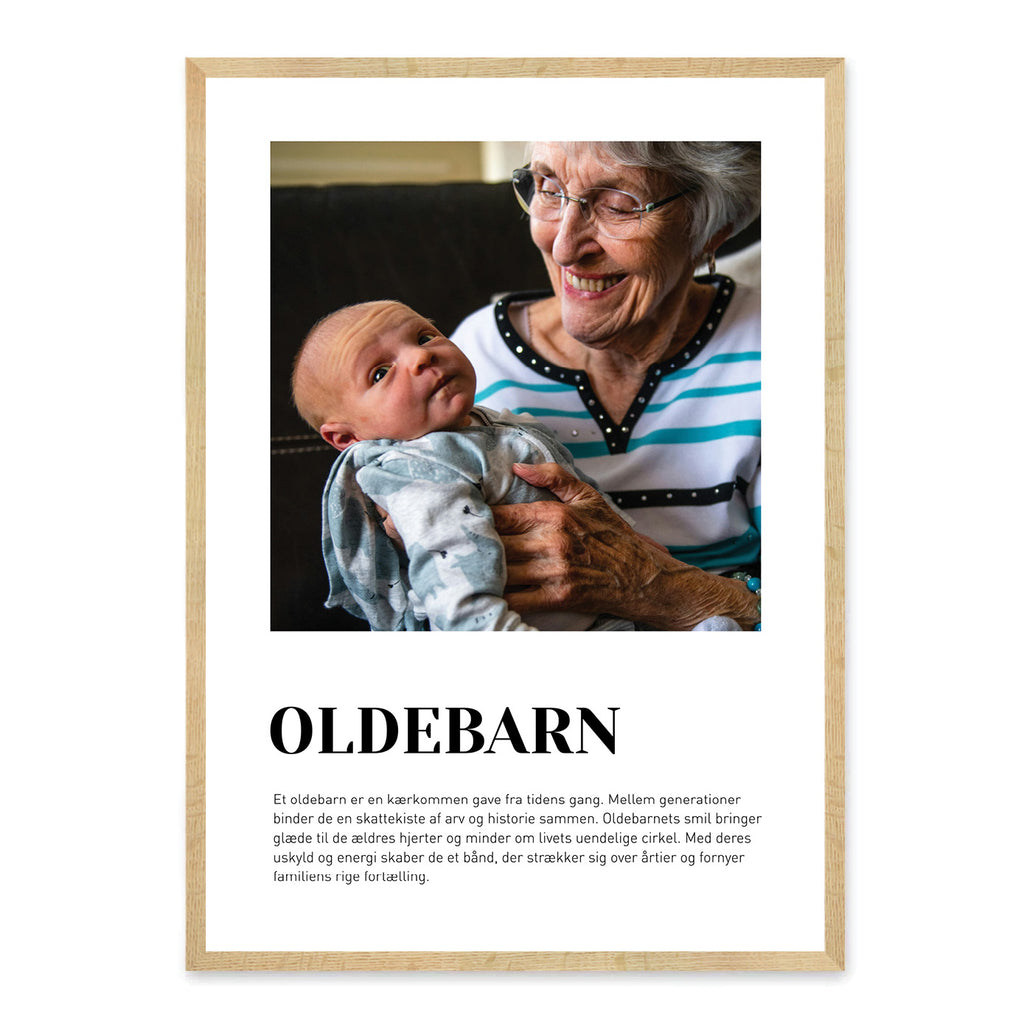 En Oldebarn-plakat er en kærlig måde at hylde den helt særlige relation, du har til dit oldebarn. Den fremhæver de minder, grin og små øjeblikke af nærhed, der binder jer sammen som familie, og viser, hvor meget han eller hun betyder, og hvor stor en rolle dit oldebarn spiller i dit liv. Plakaten er en smuk måde at vise kærlighed og stolthed over jeres unikke bånd.