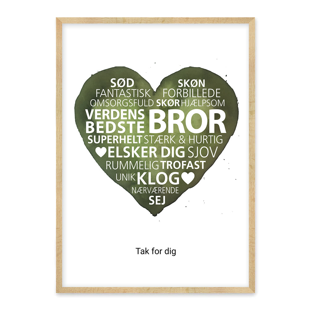 Har du verdens bedste bror? Så er en bror plakat den perfekte gave til ham. Fortæl hvor meget du sætter pris på ham og jeres relation, med en fin og personlig bror plakat. Søskende bliver knyttet til hinanden, men har også deres op og nedture, og det kan nogle gange være svært, at få sagt, hvad de betyder for en. Glemmer du også at få det sagt, eller har du svært ved det, så kan du bruge en bror plakat til hjælp.