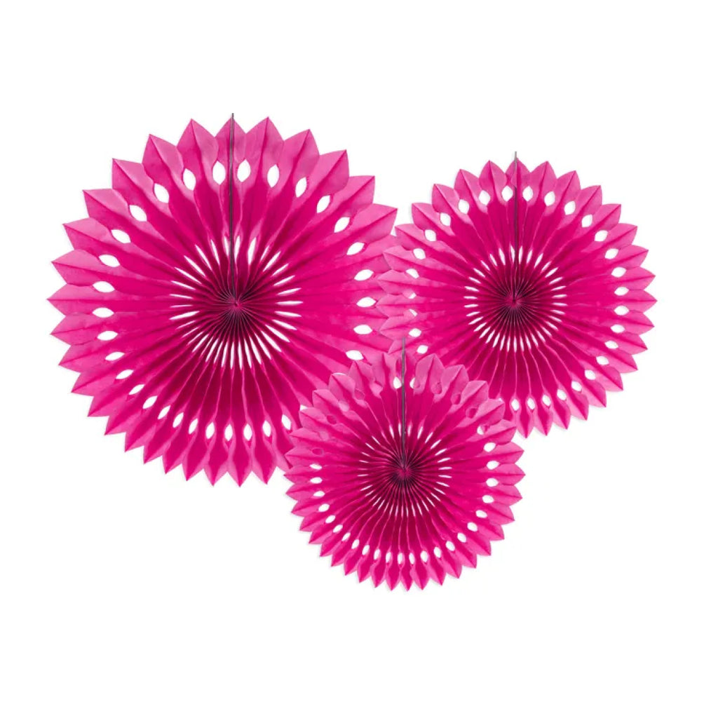 Dekorative Rosetter – Mørk Pink – 20-30 cm – 3 stk.