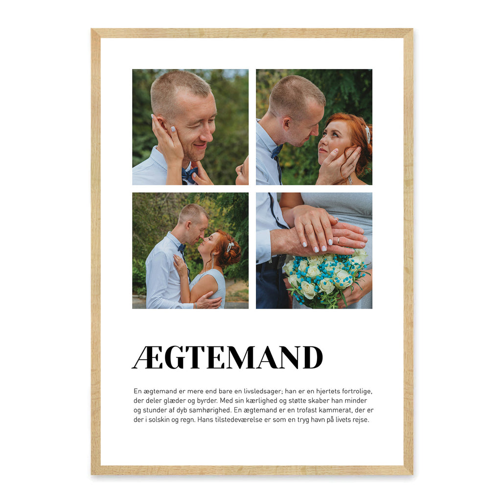 Vis kærlighed og påskønnelse med denne smukke Ægtemand-plakat. Gør den personlig med egne billeder og tekst, så den afspejler jeres unikke historie og de særlige minder, I deler sammen.