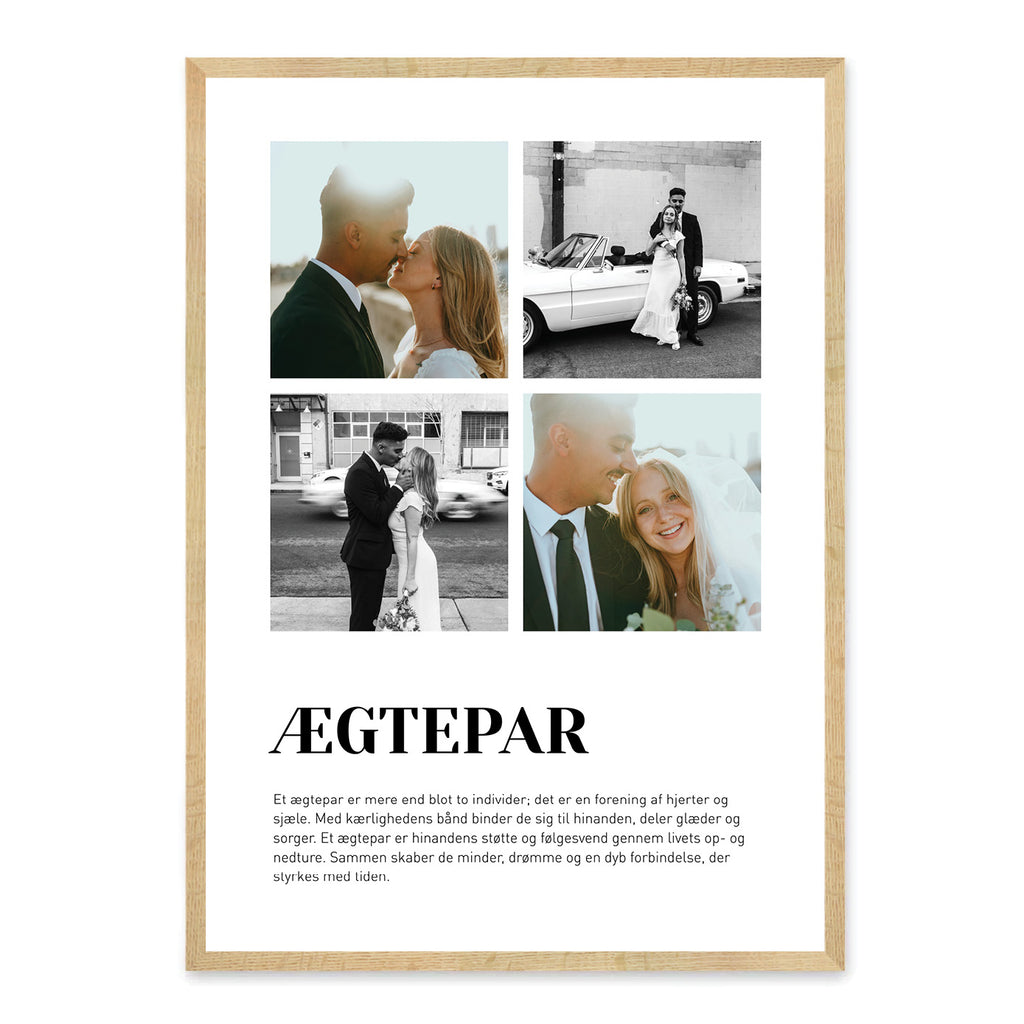 Fejr kærligheden og samhørigheden i jeres forhold med denne smukke Ægtepar-plakat. Gør plakaten personlig med egne billeder og tekst, så den afspejler jeres unikke historie og de særlige minder, I deler sammen.