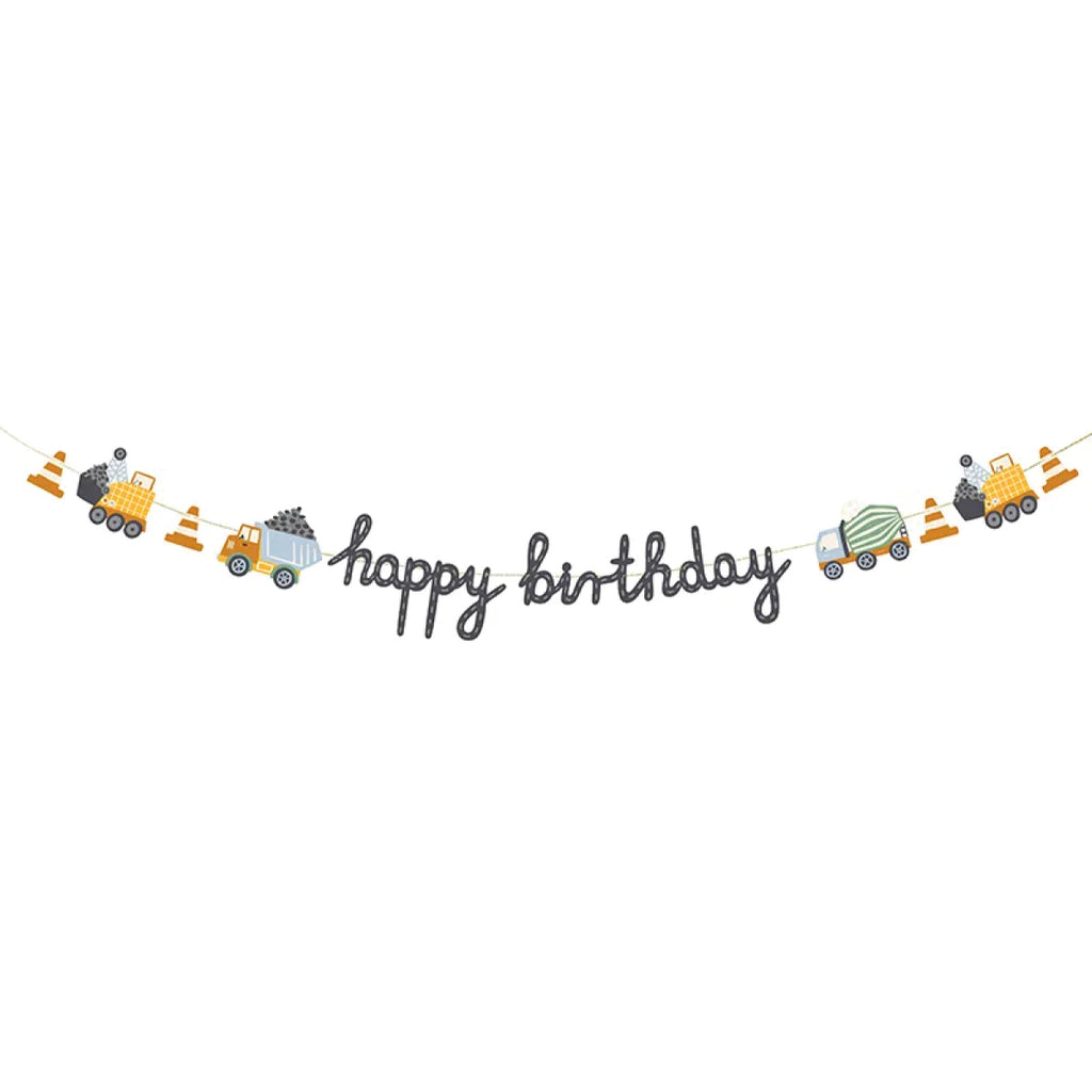 Banner – Happy Birthday med Byggeplads-køretøjer – Farverigt Mix – 2 meter