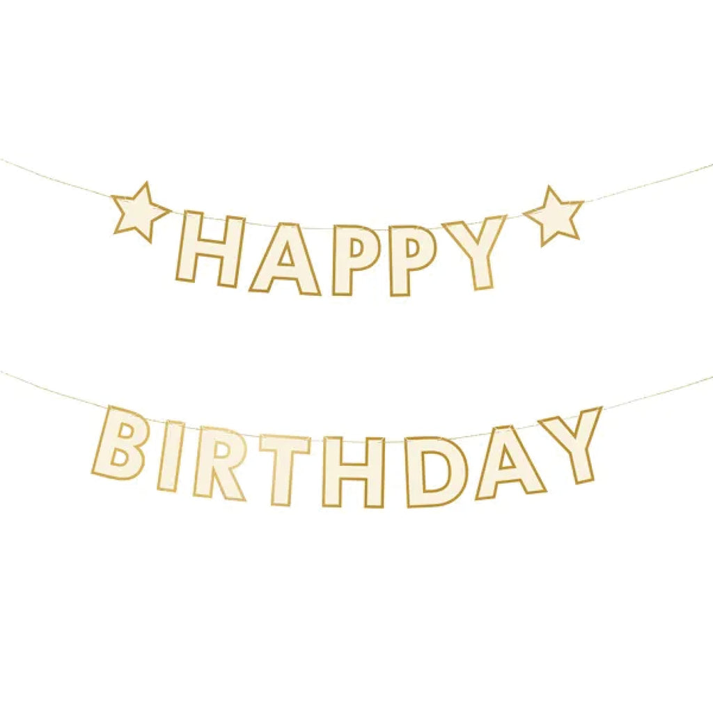 Banner – Happy Birthday – Hvid & Guld – 220 cm