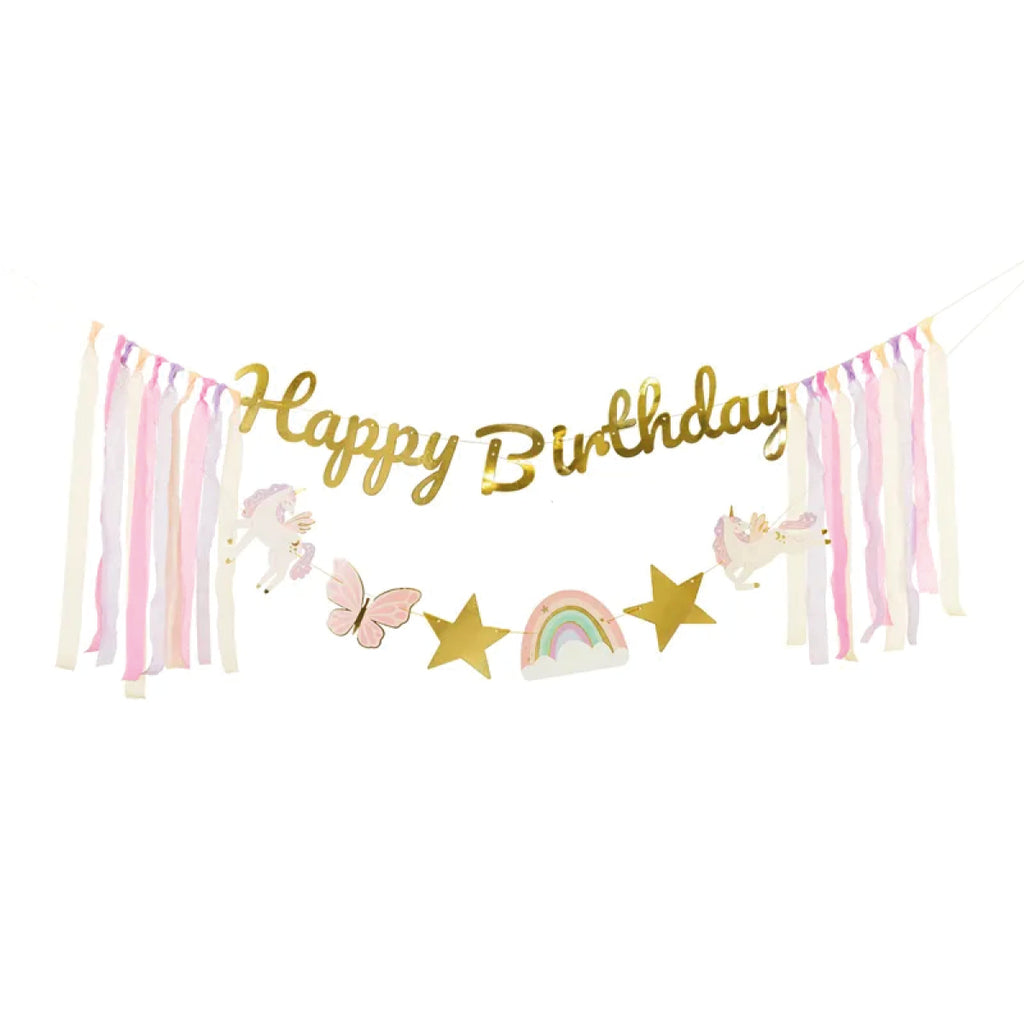 Banner – Happy Birthday Enhjørning – Farverigt Mix – 230 cm