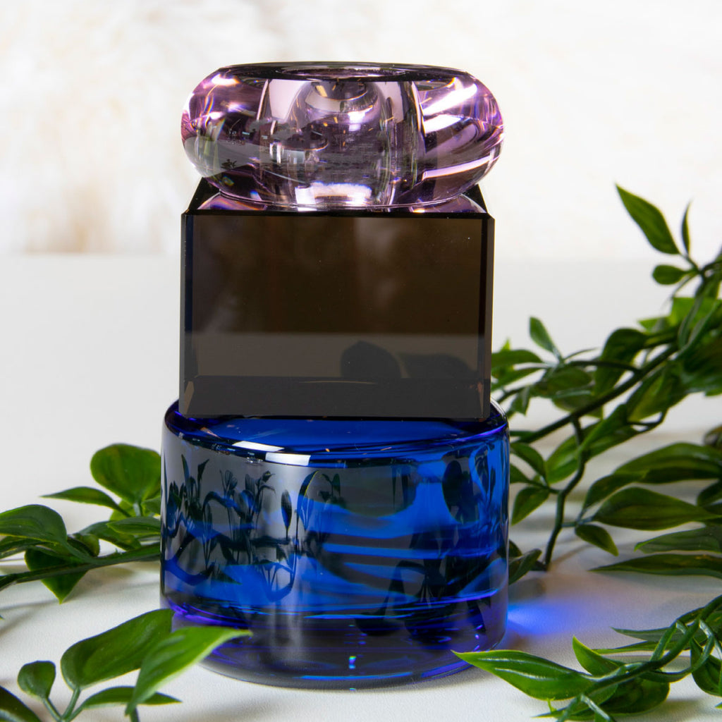 Denne smukke Petunia lysestage fra House of Sander, er en smuk krystal glas lysestage i flere farver - lyserød, røget og blå glas, med et særpræget look. Lysestagen er opbygget i flere forskellige former, der til sammen giver et kunstnerisk look og kan mixes med andre former for lysestager. Lysestagen vil pynte flot på et bord eller måske på en kommode med andre pynteting. Petunia lysestagen passer til kronelys og er håndlavet, så der kan være små variationer i lysestagerne.