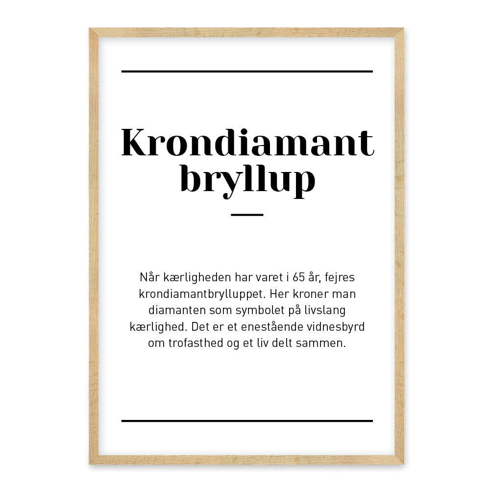 Her hos Homedec finder du et udvalg af produkter til Krondiamantbrylluppet. Det kunne være et smukt skilt til æresporten, en granguirlande eller diverse festpynt.