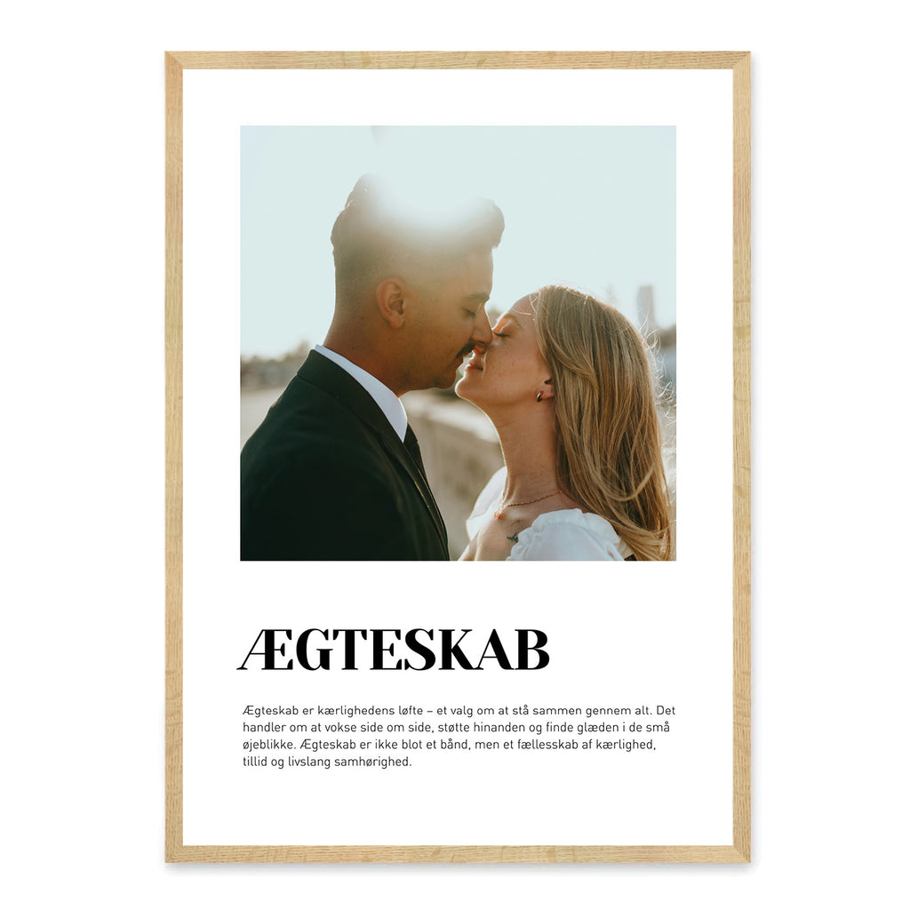 En Ægteskab-plakat er en smuk måde at hylde det særlige bånd mellem to mennesker. Den symboliserer kærlighed, samhørighed og de unikke øjeblikke, I deler sammen som par.