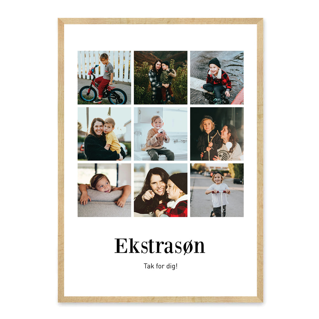 En inspirerende plakat skabt til en ekstrasøn, der fejrer hans personlighed, energi og de uforglemmelige øjeblikke, I deler. Den hylder hans styrke, humor og de små stunder, der gør jeres bånd helt særligt. Plakaten kan tilpasses med dine egne 6 eller 9 billeder, en personlig overskrift og tekst, som fortæller hans unikke historie.