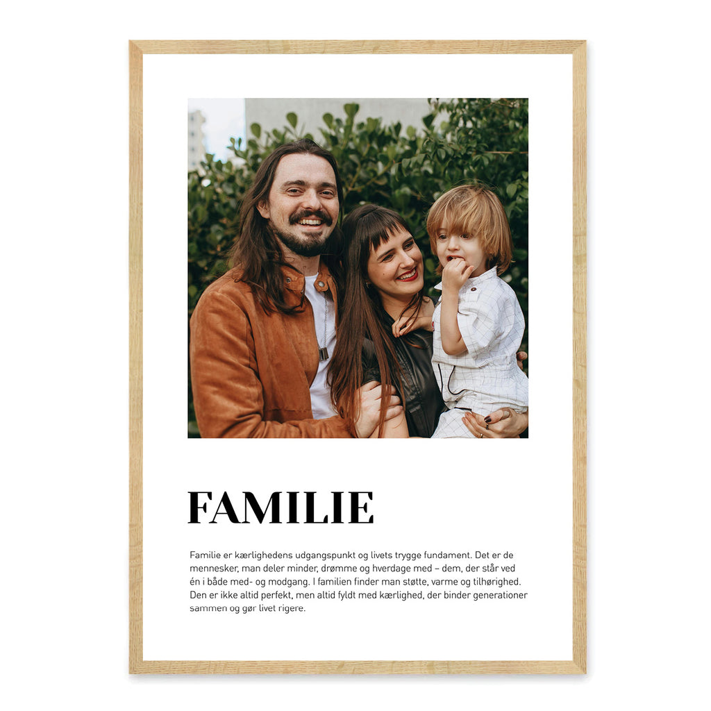 En Familie-plakat er en kærlig måde at hylde den helt særlige relation, du har til din familie – uanset om I er vokset op side om side eller først har fundet hinanden senere. Den fremhæver de minder, grin og små øjeblikke af nærhed, der binder jer sammen som familie. Plakaten er en smuk måde at vise, hvor meget de betyder, og hvor stor en rolle de spiller i dit liv.