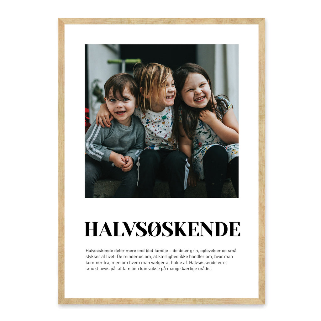 En Halvsøskende-plakat er en smuk måde at hylde den helt særlige relation, du har til dit halvsøskende – uanset om I er vokset op tæt sammen eller har lært hinanden bedre at kende senere i livet. Den fremhæver de minder, grin og små øjeblikke af nærhed, der binder jer sammen som familie. Plakaten er en kærlig måde at vise, hvor meget dit halvsøskende betyder, og hvor vigtig en plads personen har i dit liv.