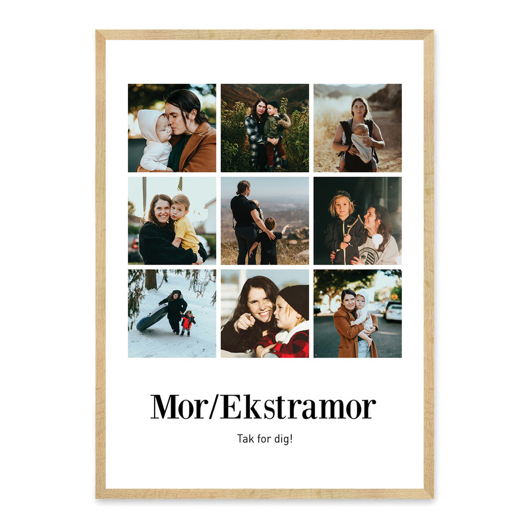 En personlig plakat til en mor/ekstramor, der fortjener at blive mindet om, hvor stor en forskel hendes støtte og nærvær har gjort i jeres liv. Uanset om hun har fulgt jer fra start eller er kommet til senere med samme varme og omsorg, fortæller plakaten historien om jeres helt særlige bånd. I kan designe den med dine egne 6 eller 9 billeder, en personlig overskrift og tekst, så den bliver et rørende og helt unikt minde om jeres relation.