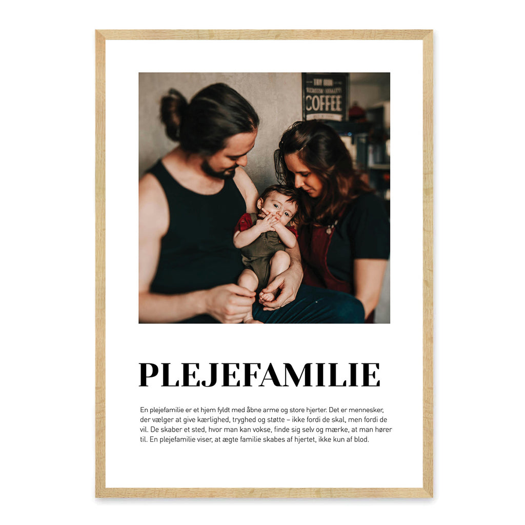 En Plejefamilie-plakat er en varm og personlig måde at fejre den helt unikke relation, du har til din plejefamilie. Den fremhæver de minder, smil og små øjeblikke af nærhed, som binder jer sammen og gør jeres relation helt særlig. Plakaten er en smuk gestus, der viser, hvor meget de betyder, og hvilken vigtig rolle de spiller i dit liv.