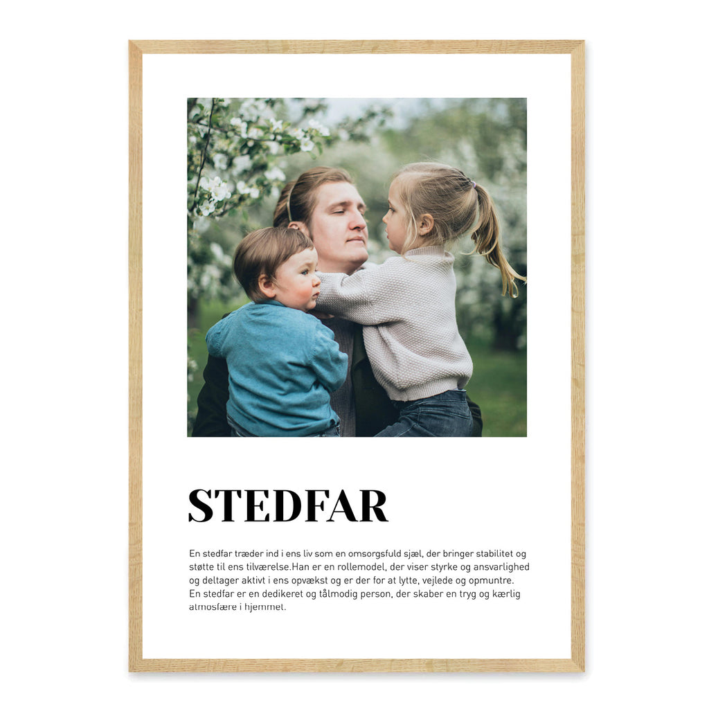 En Stedfar-plakat er en kærlig måde at hylde den særlige rolle, din stedfar har i dit liv. Den fremhæver de minder, grin og små øjeblikke af nærhed, der binder jer sammen, og viser tydeligt, hvor meget han betyder for dig. Plakaten er en smuk måde at anerkende hans støtte, omsorg og betydning i familien.