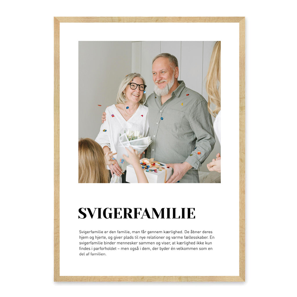 En Svigerfamilie-plakat er en kærlig måde at hylde den særlige relation, du har til din svigerfamilie. Den fremhæver minder, grin og små øjeblikke af nærhed, der binder jer sammen som familie. Plakaten viser på smukkeste vis, hvor meget de betyder, og hvor stor en rolle de spiller i dit liv.