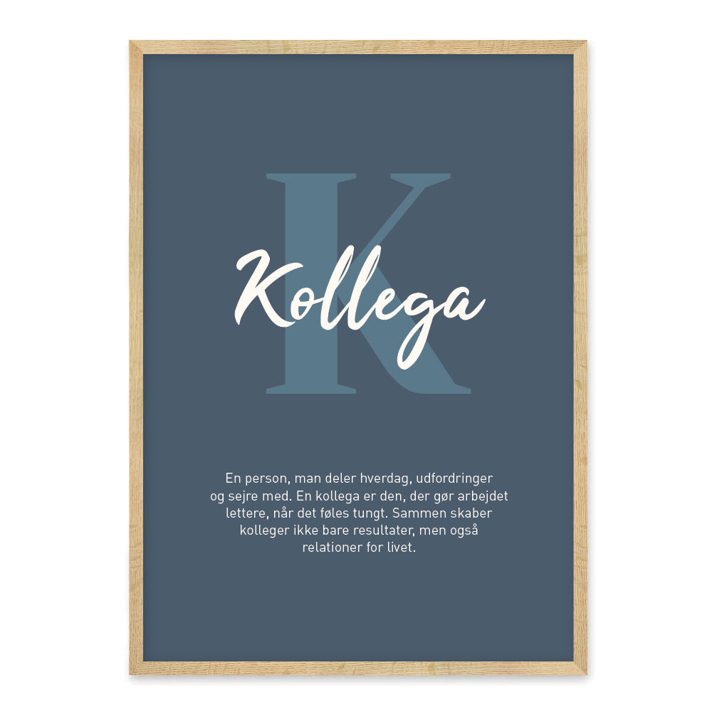 Plakaten fås i fire farvevariationer – grøn, blå, grå og bordeaux – så du nemt kan vælge den udgave, der passer bedst til indretningen. Uanset om den gives som gave til en leder eller bruges som dekoration på arbejdspladsen, skaber plakaten et moderne og professionelt udtryk.