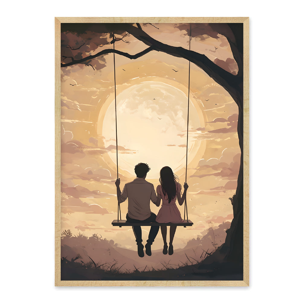 Danmark plakat -Plakat med par på gynge under træ ved solnedgang