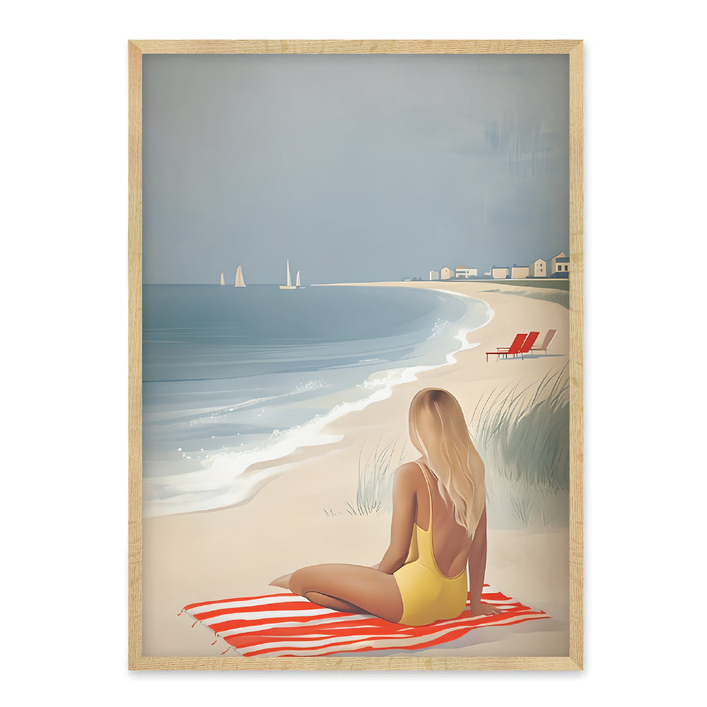 Danmark plakat - Plakat af kvinde i gul badedragt på stranden
