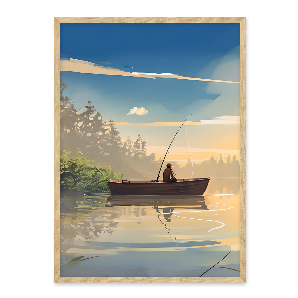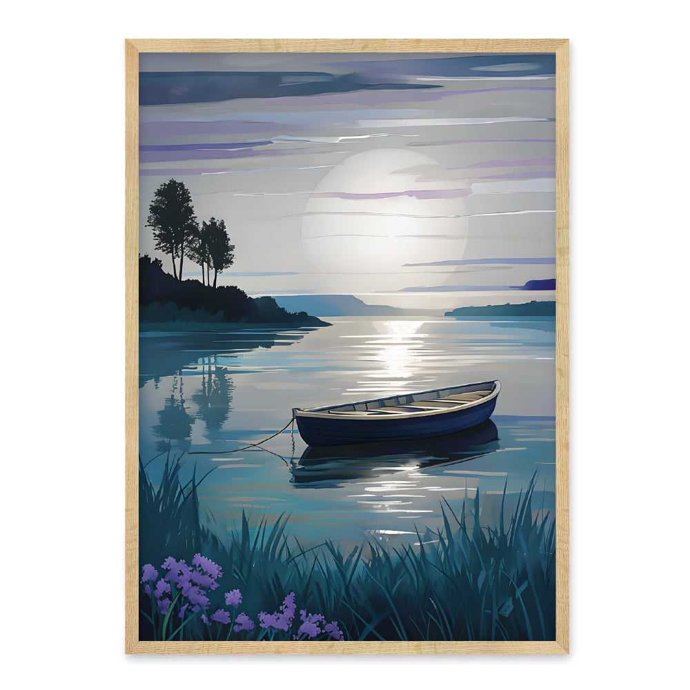 Danmark plakat - Plakat med båd på sø i mørke nuancer