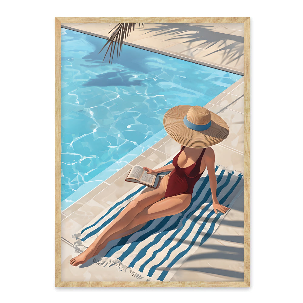 Danmark plakat - Plakat af kvinde i mørkerød badedragt ved poolen