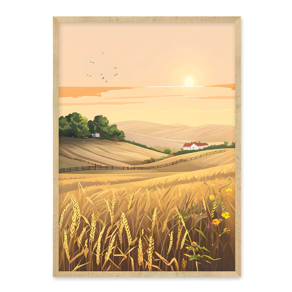 Danmark plakat - Plakat med gyldne marker og lille gård