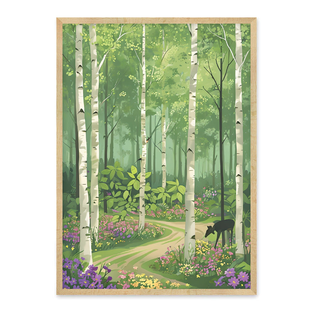Danmark plakat - Plakat af skov med dådyr og blomster