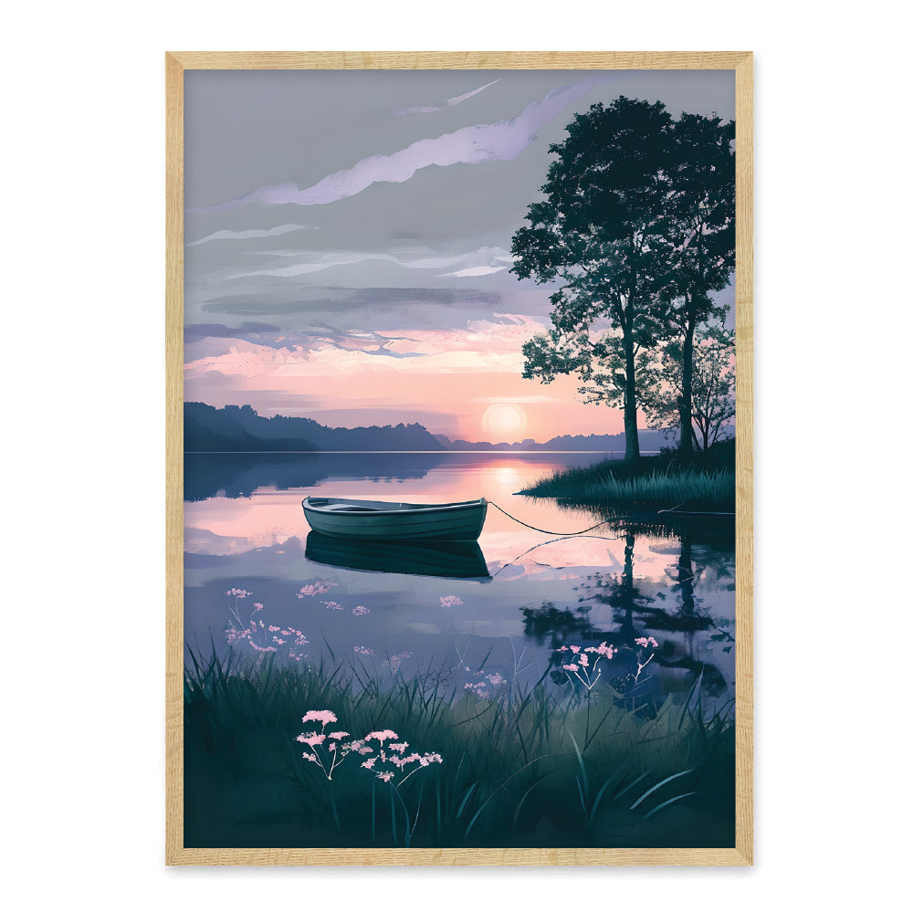 Danmark plakat - Plakat af båd på lilla-lyserød sø