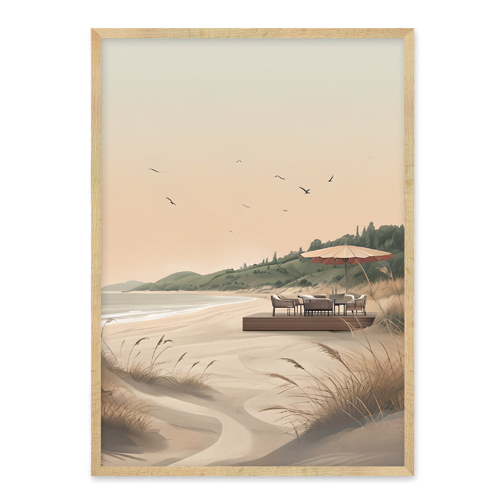 Danmark plakat - Plakat af strandterrasse med parasol og udsigt