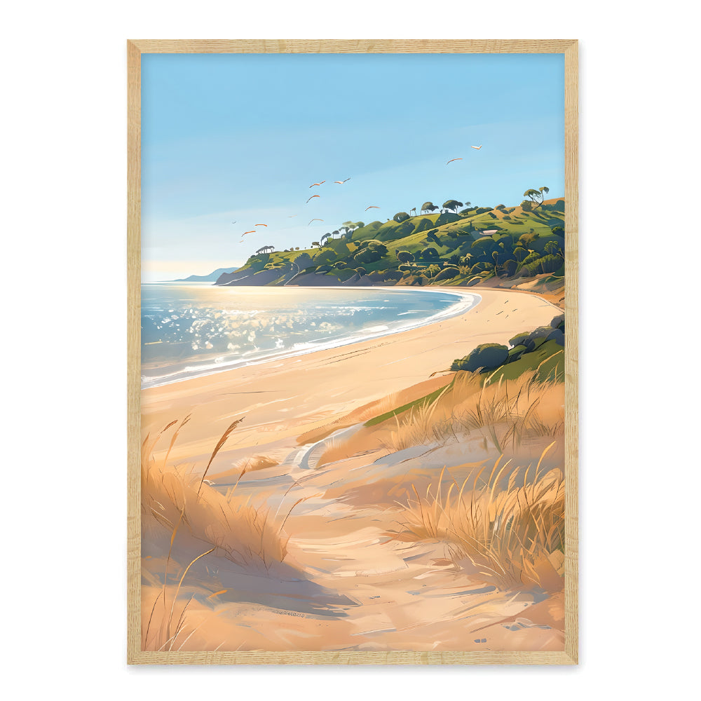 Danmark plakat - Plakat af sti til hav med siv og bølger