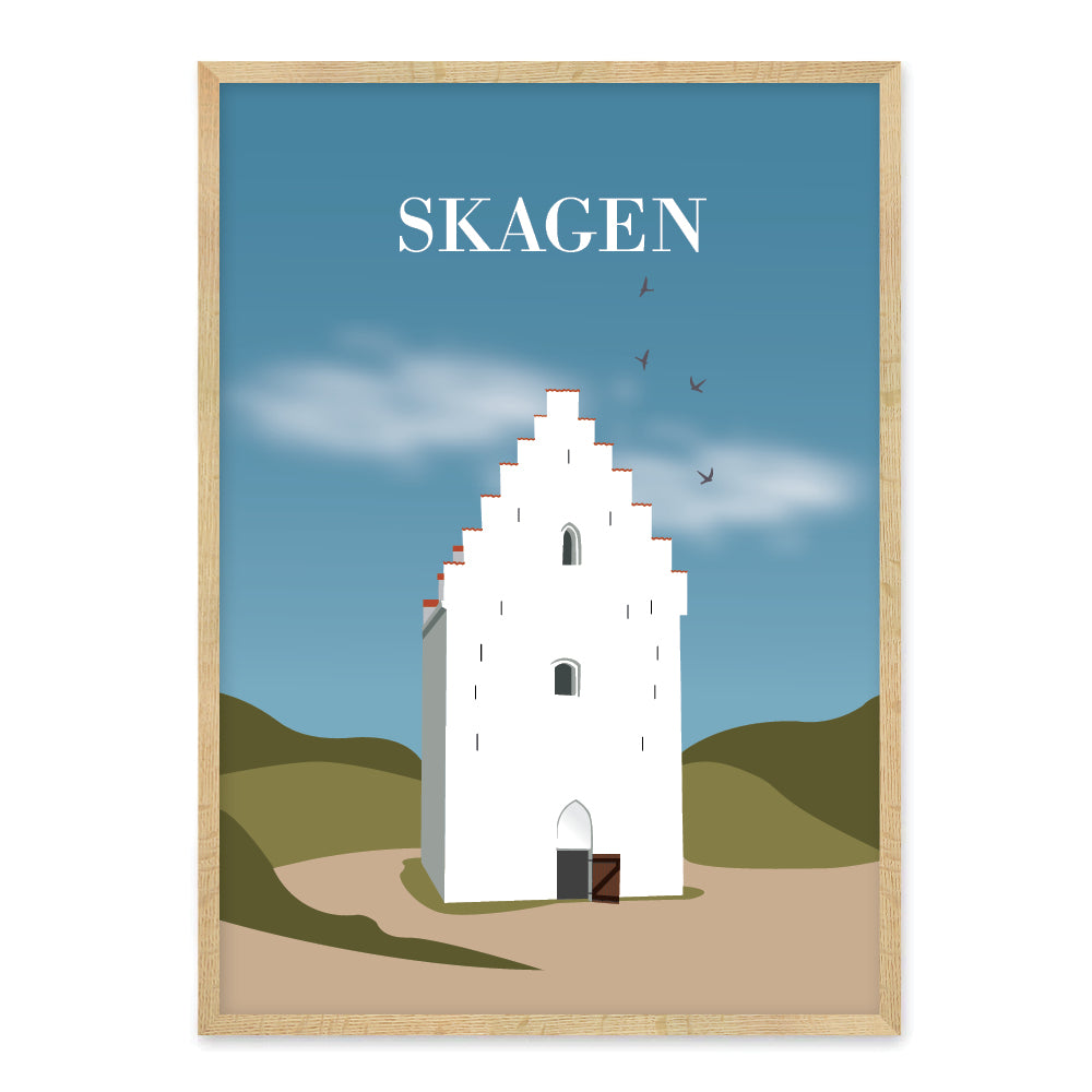 Danmark plakat - Plakat af sandsti til strand med siv og klitter
