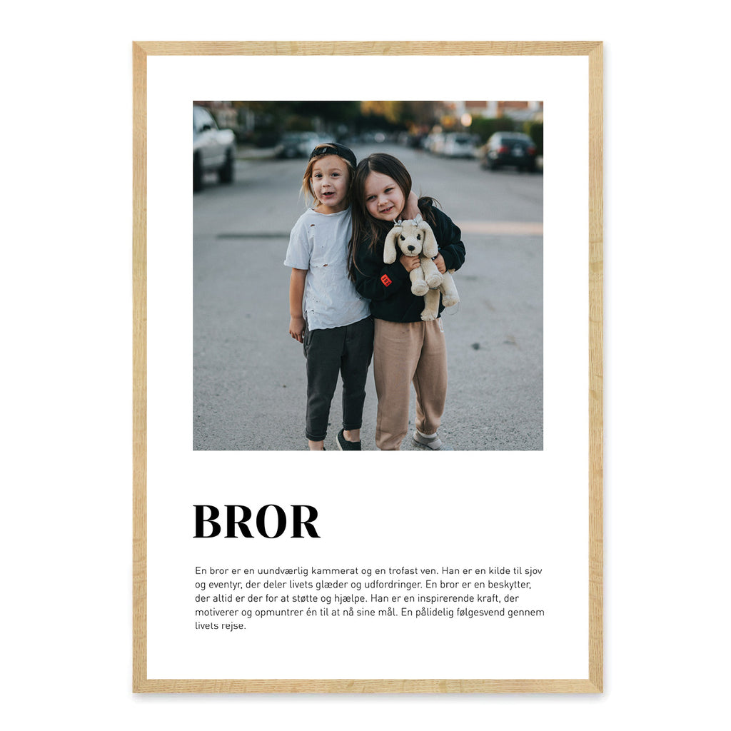 En Bror-plakat er en kærlig hyldest til den helt særlige rolle, en bror spiller i livet. Den fortæller historien om et bånd, der formes af grin, drillerier, fortrolighed og øjeblikke, hvor man mærker, at man altid har hinanden – uanset hvad. En bror er både en ven, en støtte og en livsledsager, og plakaten indfanger netop den varme og betydning, der gør relationen så unik.