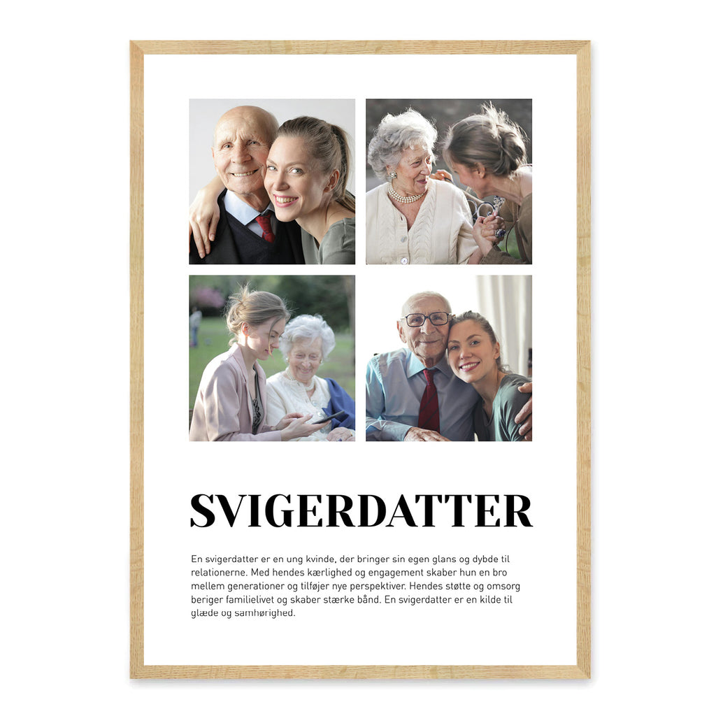 En Svigerdatter-plakat er en smuk måde at hylde det særlige forhold mellem dig og din svigerdatter. Den symboliserer varme, nærvær og det bånd, der vokser gennem fælles oplevelser og omsorg.
