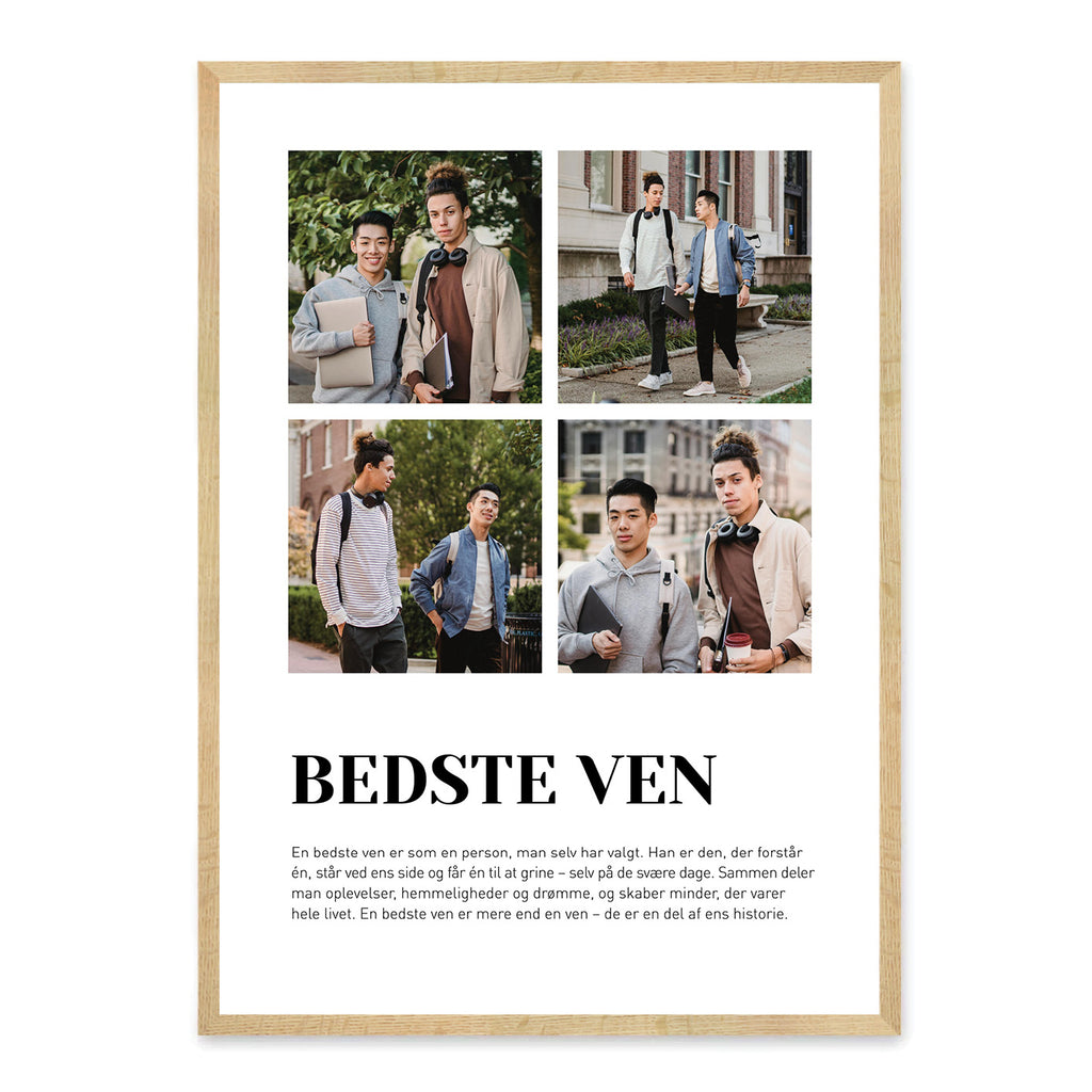 Fejr venskabet og det særlige bånd til din bedsteven med denne smukke plakat. Gør den personlig med egne billeder og tekst, så den afspejler minder, nærvær og de gode stunder, I deler sammen.