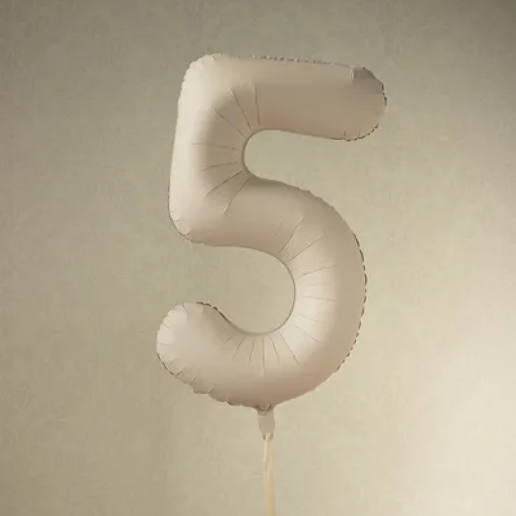 Folieballon med tallet "5" i en elegant lys varm grå nuance. Denne matte talballon er ideel til at skabe et stilrent og festligt udtryk ved enhver fejring. Den bløde beigegrå farve og matte overflade giver ballonen et eksklusivt look, som passer perfekt til fødselsdage, jubilæer, årsdage og andre særlige begivenheder.