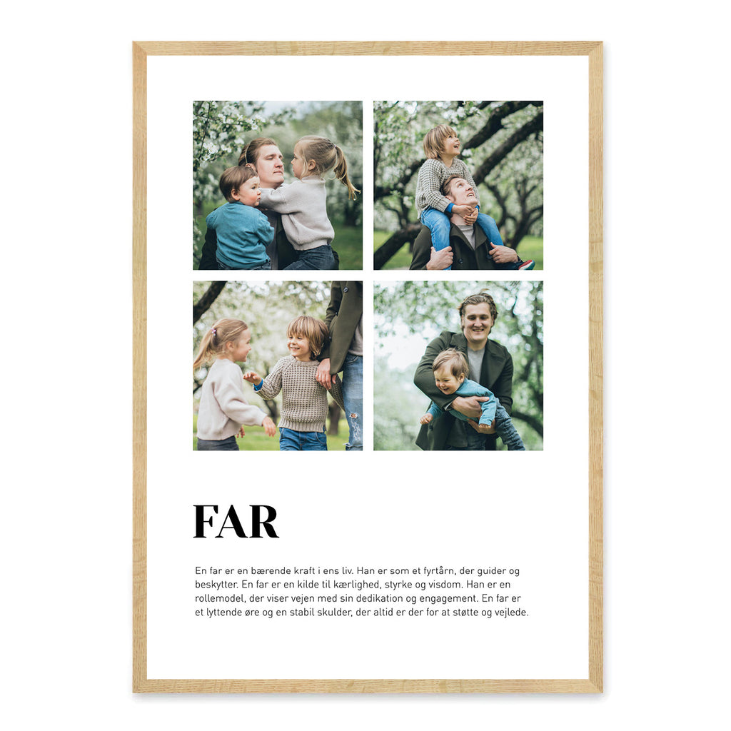 Fejr kærligheden og det særlige bånd til din far med denne smukke plakat. Gør den personlig med egne billeder og tekst, så den afspejler minder, nærvær og de gode stunder, I deler sammen.