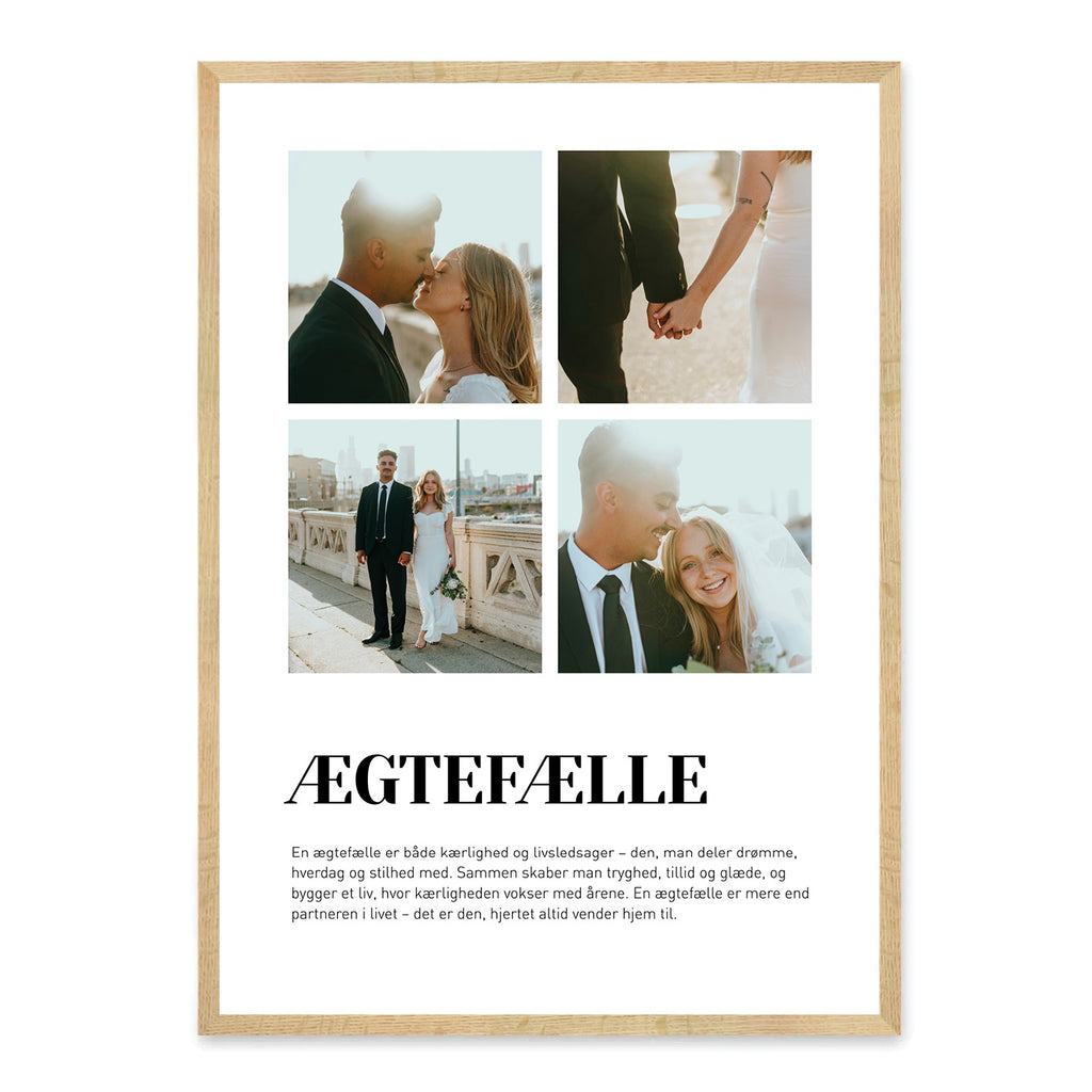 Fejr kærligheden og nærheden i jeres forhold med denne smukke Ægtefælle-plakat. Gør plakaten helt personlig med egne billeder og tekst, så den afspejler jeres unikke historie og de særlige minder, I deler.