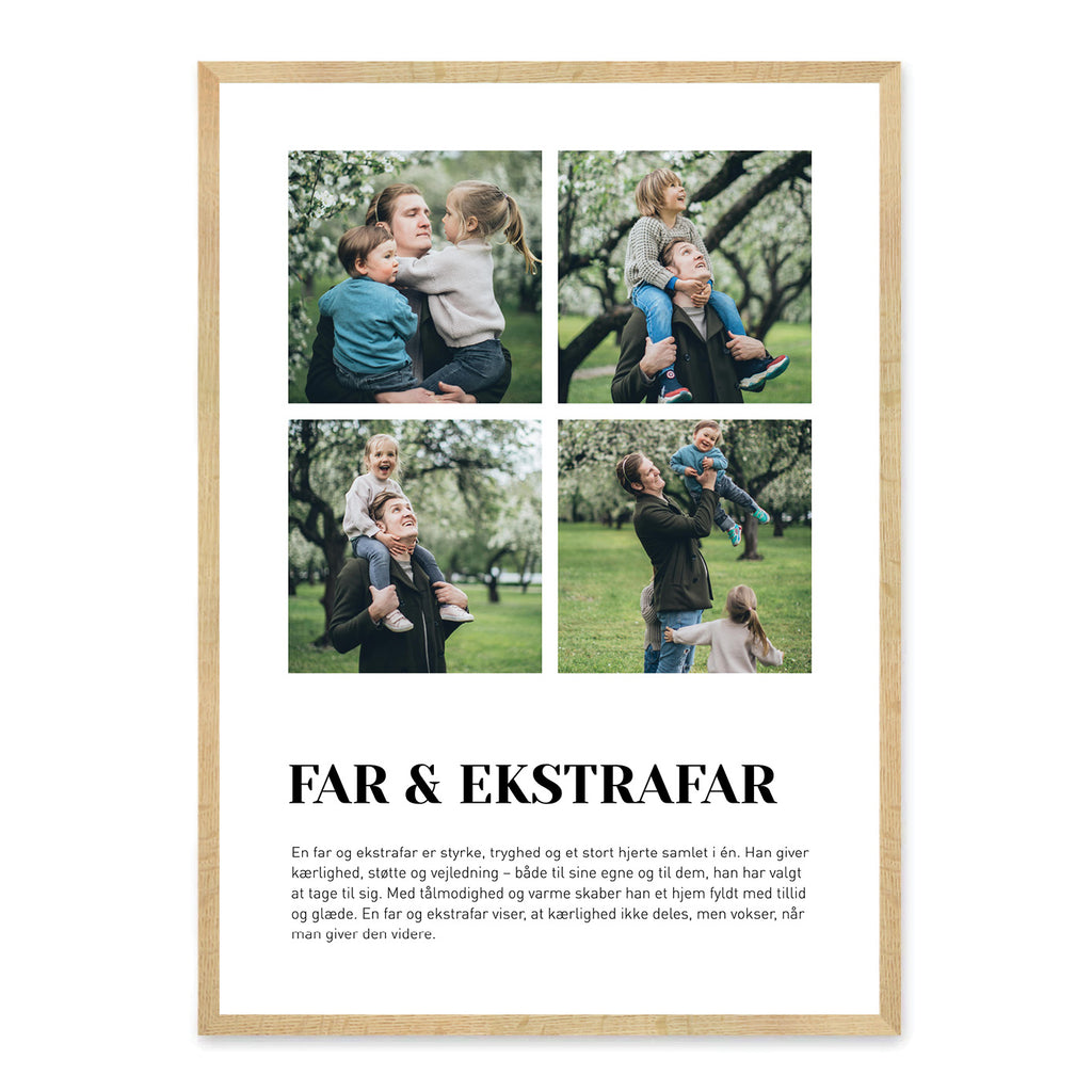 Fejr kærligheden og det særlige bånd til både far og ekstrafar med denne smukke plakat. Gør den personlig med egne billeder og tekst, så den afspejler minder, nærvær og de gode stunder, I deler sammen.
