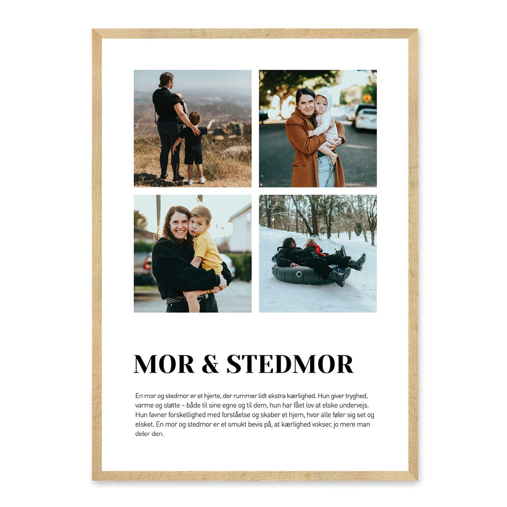 Vis både din mor og stedmor, hvor meget de betyder for dig, med en personlig plakat. Denne plakat er kærlig og unik og hylder det særlige bånd, I deler – både som familie og som personer, der gør en forskel i dit liv.
