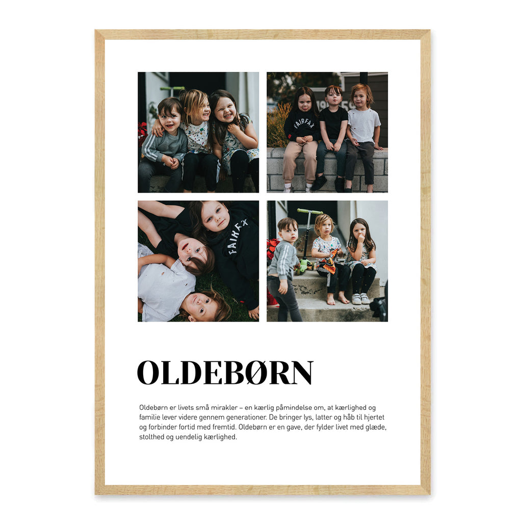 Giv dine oldebørn en personlig plakat, der viser, hvor meget de betyder for dig. Denne plakat er kærlig og unik – perfekt til at fejre det særlige bånd mellem oldeforælder og oldebørn.
