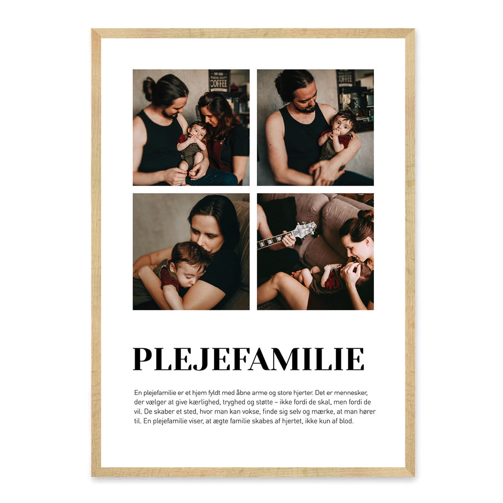 Vælg en forudskrevet tekst eller skriv jeres egne ord, og gør plakaten unik med ét eller fire billeder. En varm og mindeværdig gave – perfekt til fødselsdag, jul eller som en kærlig overraskelse, der skaber smil og gode minder for hele familien.