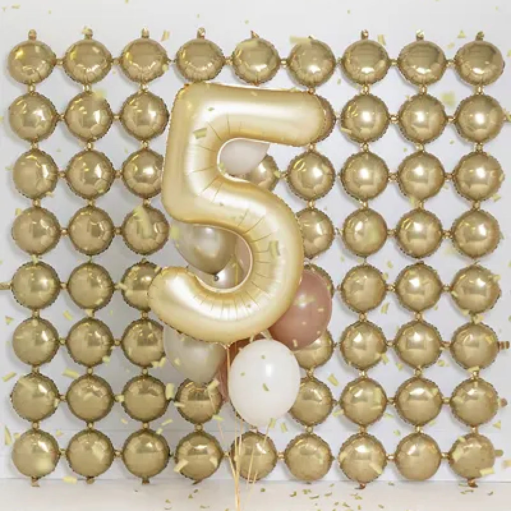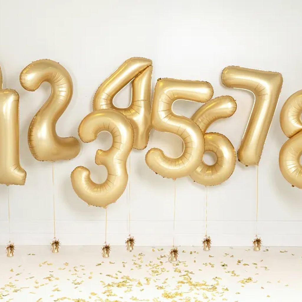 Folieballon med tallet "5" i en strålende gylden satinfinish. Denne ballon tilfører en luksuriøs og festlig stemning til din fejring. Den varme gyldne farve og satinens bløde glans giver ballonen et elegant og eksklusivt look, perfekt til fødselsdage, jubilæer og andre særlige lejligheder.