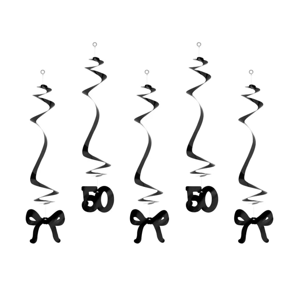 Fødselsdagsspiraler – Sort – 50-års fødselsdag – 50 cm – 5 stk.