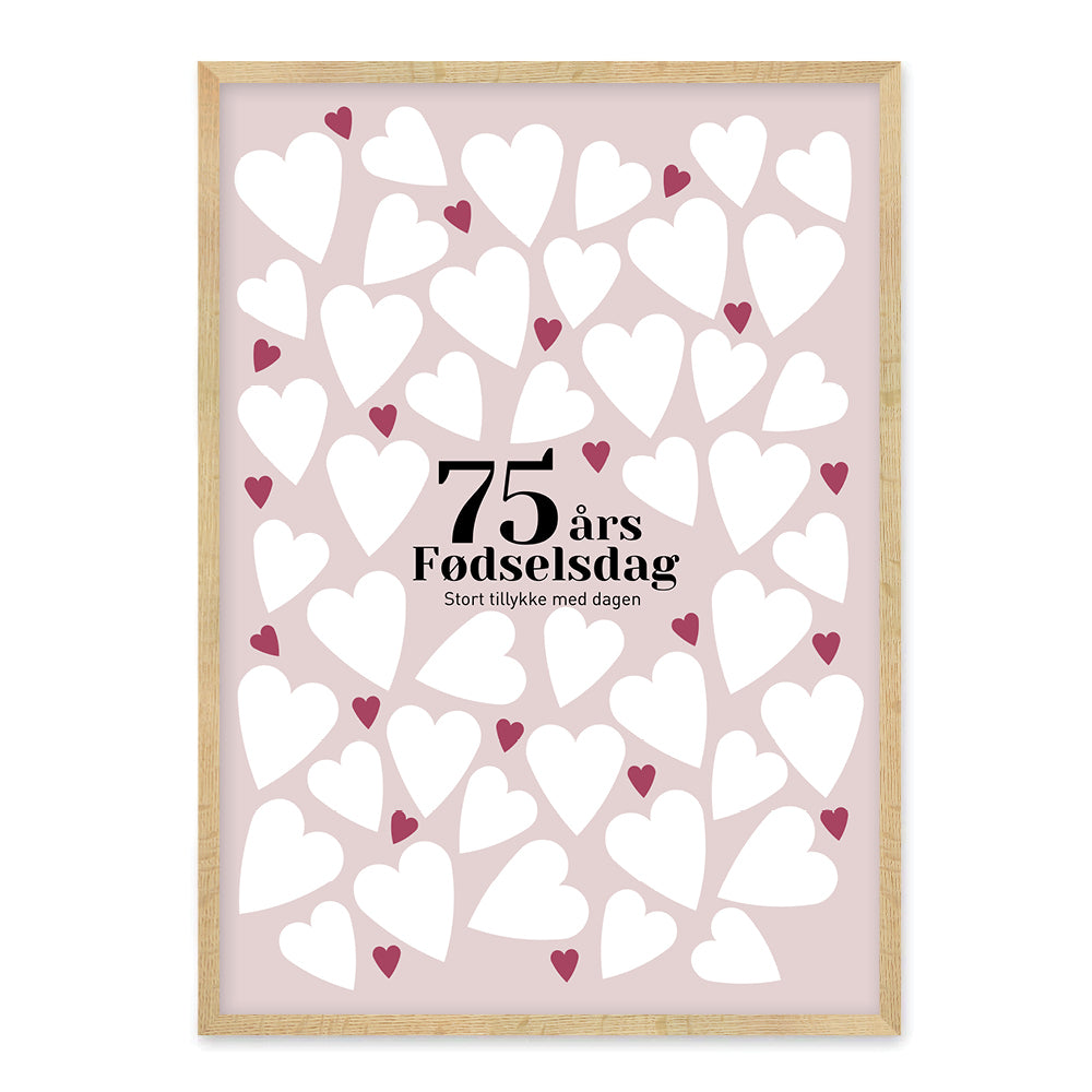 En 90 års fødselsdag er en bemærkelsesværdig milepæl fyldt med liv, kærlighed og minder. Med en gæsteplakat kan familie og venner skrive hilsner i de mange hjerter, og plakaten kan tilpasses i farver, antal hjerter og med en personlig tekst. Et rørende minde, der viser, hvor meget fødselaren betyder for sine nærmeste.