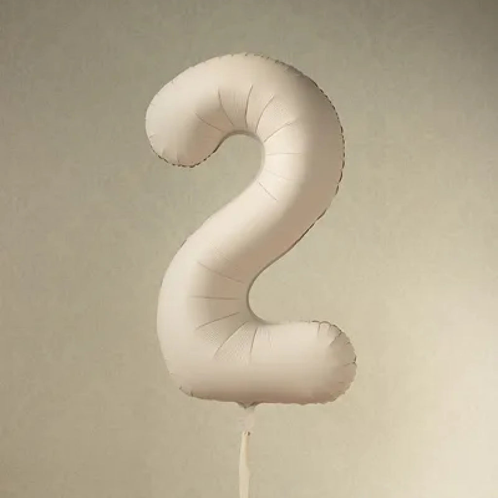 Folieballon med tallet "2" i en lys varm grå nuance. Tilføj et stilfuldt og moderne præg til din fejring med denne elegante matte talballon. Den bløde beigegrå farve og matte overflade giver ballonen et eksklusivt og afdæmpet udtryk, der passer perfekt til fødselsdage, jubilæer, temafester eller barnedåb.