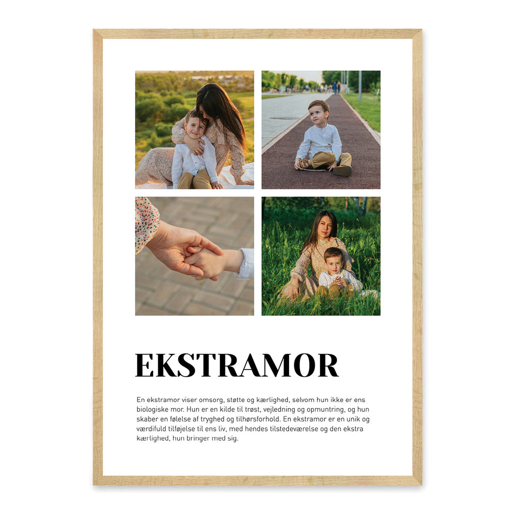 Fejr kærligheden og det særlige bånd til din ekstramor med denne smukke plakat. Gør den personlig med egne billeder og tekst, så den afspejler minder, nærvær og de gode stunder, I deler sammen.