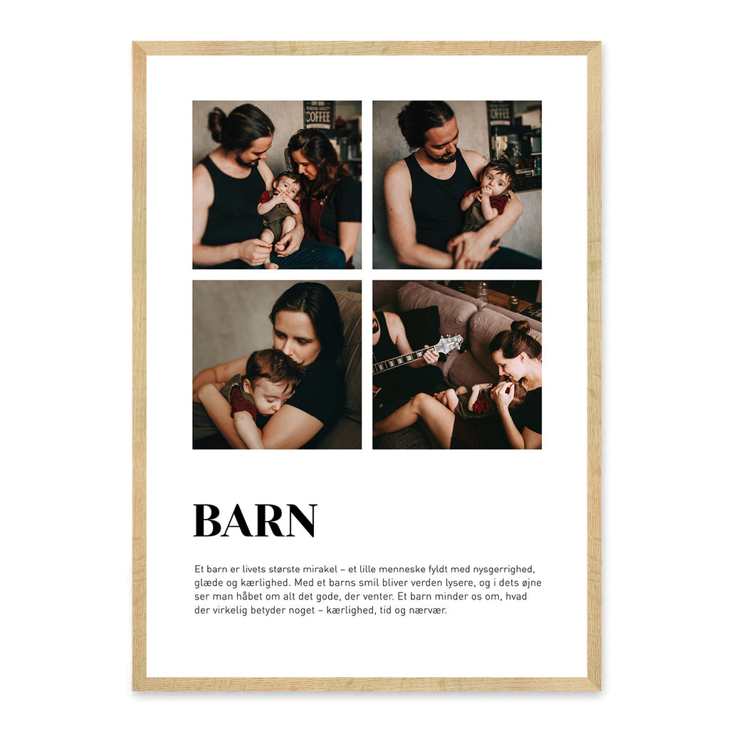 Fejr kærligheden og det særlige bånd til dit barn med denne smukke plakat. Gør den personlig med egne billeder og tekst, så den afspejler jeres unikke minder og den glæde, I deler sammen.