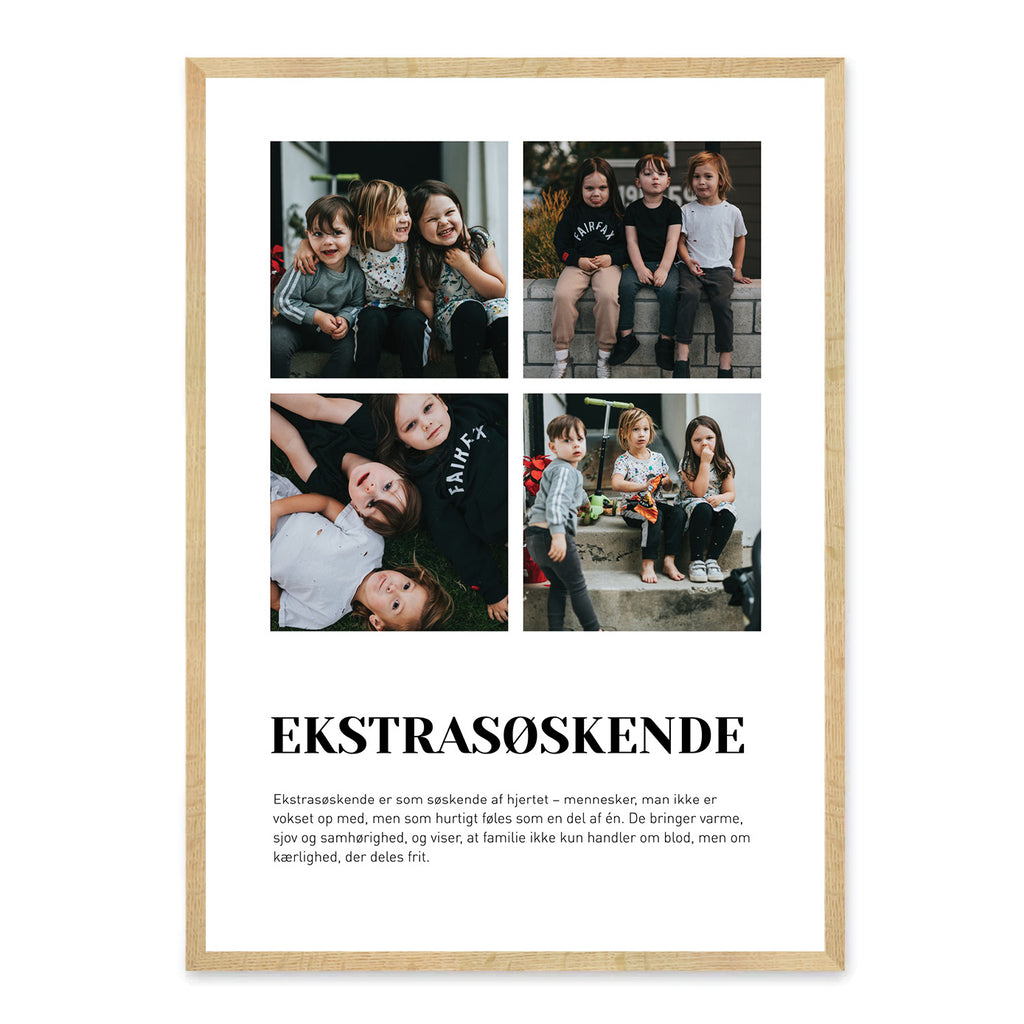 Fejr kærligheden og fællesskabet mellem ekstrasøskende med denne smukke plakat. Gør den personlig med egne billeder og tekst, så den afspejler minder, nærvær og de gode stunder, I deler sammen.