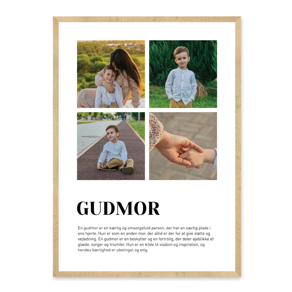 Fejr det særlige bånd til din gudmor med denne smukke plakat. Gør den personlig med egne billeder og tekst, så den afspejler minder, nærvær og de gode stunder, I deler sammen.